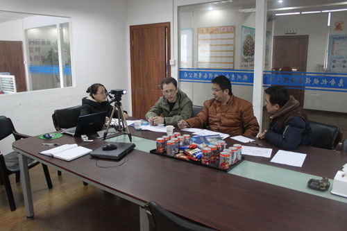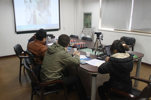 The customer from Russia need to order the whole set exploded eggs production line, they come to our company and visit our factory. The following picture is the customer talking with sales staff and engineers about the specific details of the negotiations.