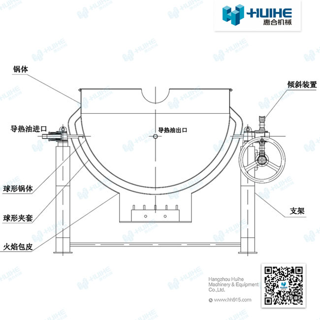 1.可傾式電加熱夾層鍋的用途是由內外球形鍋體組成的雙層結構形式,內外球形鍋體中間夾層通入蒸汽加熱。