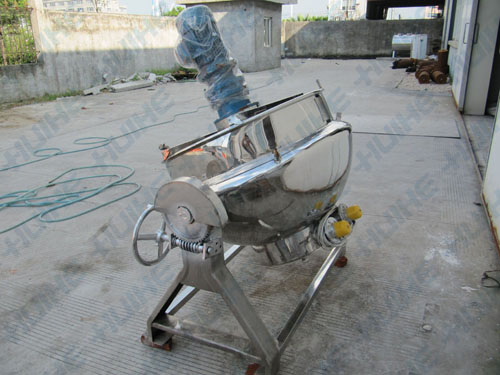 注:夾層鍋使用現場圖中的攪拌工藝是人工攪拌,可換為自動攪拌。具體查看可傾式夾層鍋圖