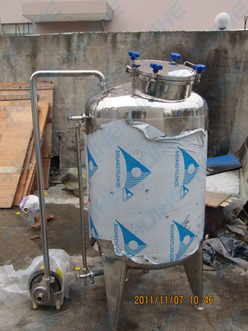 開放式發酵罐:將經過破碎、二氧化硫處理、成分調整或不調整的葡萄果漿,用泵送入開口式發酵桶(池)至桶容約4/5,留空位約1/5預防發酵時皮渣沖出桶外,最好在一天內沖齊。加入培養正旺盛的酒母3-5%乃至10%(按果漿量計),根據具體情況而定。