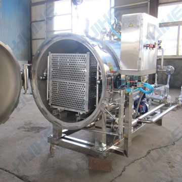 臥式殺菌鍋是屬于靜置式、間歇式殺菌設(shè)備,殺菌鍋原理是以通入飽和蒸汽為加熱介質(zhì)對(duì)產(chǎn)品進(jìn)行高溫滅菌,用補(bǔ)充壓縮空氣來(lái)實(shí)施反壓操作,再注入冷水(溫水)直接進(jìn)行強(qiáng)制冷卻的殺菌設(shè)備。