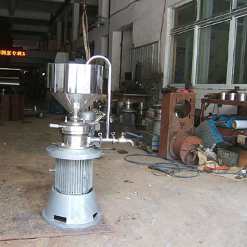 (五)打漿、細磨切下的玉米籽及刮取的漿液經加入5倍重的水用打漿機打漿,篩孔直徑為0.5毫米,除去玉米軸碎片及其他雜物。然后再用膠體磨進行細磨轉入攪拌缸中待用。