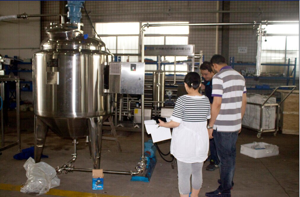 經過與外貿業務員的多次溝通與確認,孟加拉客戶于2016年4月在我公司下單一臺500L攪拌罐。目前設備已接近收尾工作,昨日客戶來我公司驗貨,業務員與技術工程師熱情接待并為其講解了攪拌罐的各組成部件與操作方法,對客戶提出的疑問一一解答,對后續的問題進行協商。