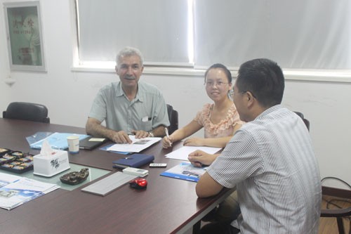 迪拜客戶需要定制數臺攪拌罐,來我公司參觀并與銷售人員進行具體細節的洽談。