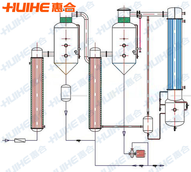 2、設備的傳熱系數高、物料的滯留時間短、設備的造價低、整機設備緊湊、占地面積少。、本設備可根據客戶的使用要求,可設計成雙效、三效及多效的形式。