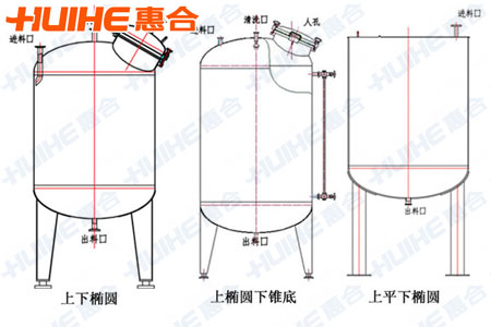 1、按結(jié)構(gòu)形式分為:上開蓋下斜底、上開蓋下錐形封頭、上下錐形封頭、上下橢圓封頭