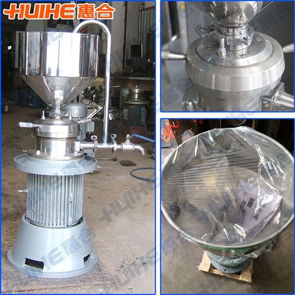 膠磨機由不銹鋼、半不銹鋼膠體磨組成,膠體磨的基本原理是流體或半流體物料通過相對連動的定齒與動齒之間,使物料受到剪切力,磨擦力及高頻振動等作用